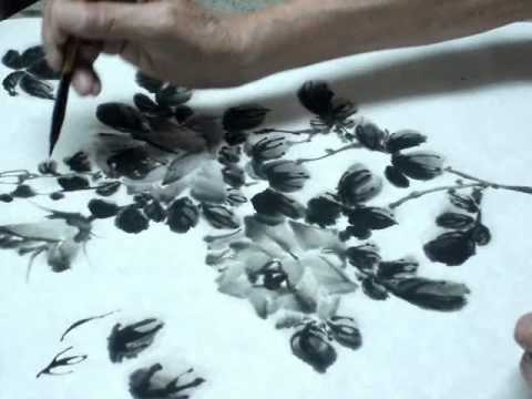 39.國畫自學 墨色花示範 玫瑰 4/4